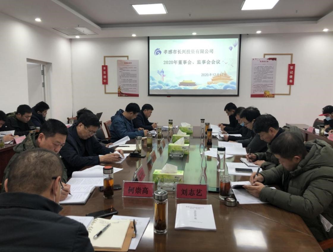 2020年12月17日下午,孝感市長興投資有限公司召開了董事會(huì)、監(jiān)事會(huì)。公司董事長胡格峰主持會(huì)議,公司各董事、監(jiān)事及高管共同參加會(huì)議,本次會(huì)議應(yīng)到董事13人,實(shí)到董事11人,應(yīng)到監(jiān)事10人,實(shí)到監(jiān)事10人,符合法律程序。